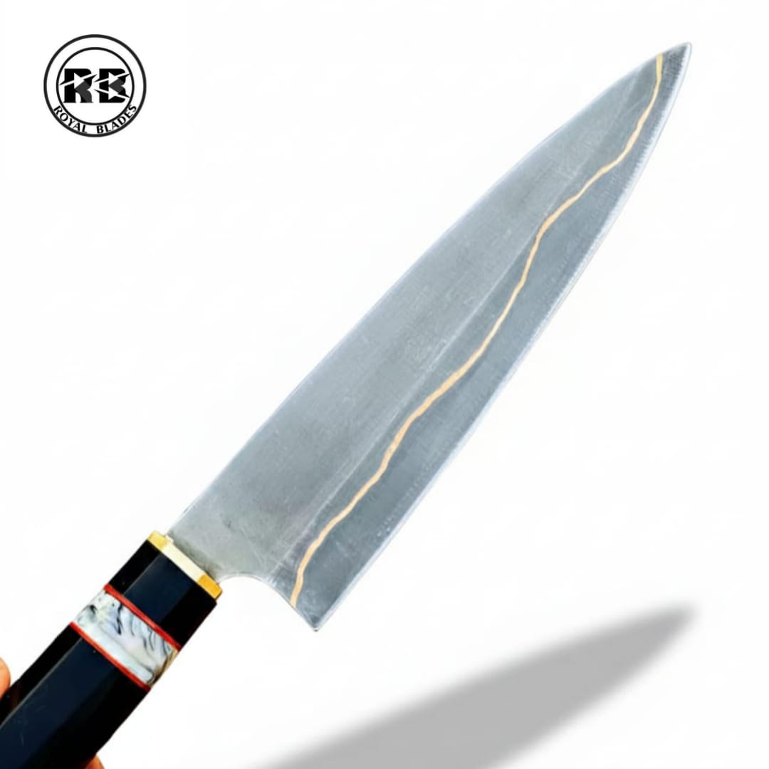 At Royal Blades, we transform high-performance kitchen tools into legendary artifacts. This 11-inch chef knife is a premier example of our artisan craftsmanship, merging the rare beauty of copper-infused metallurgy with modern handle materials.