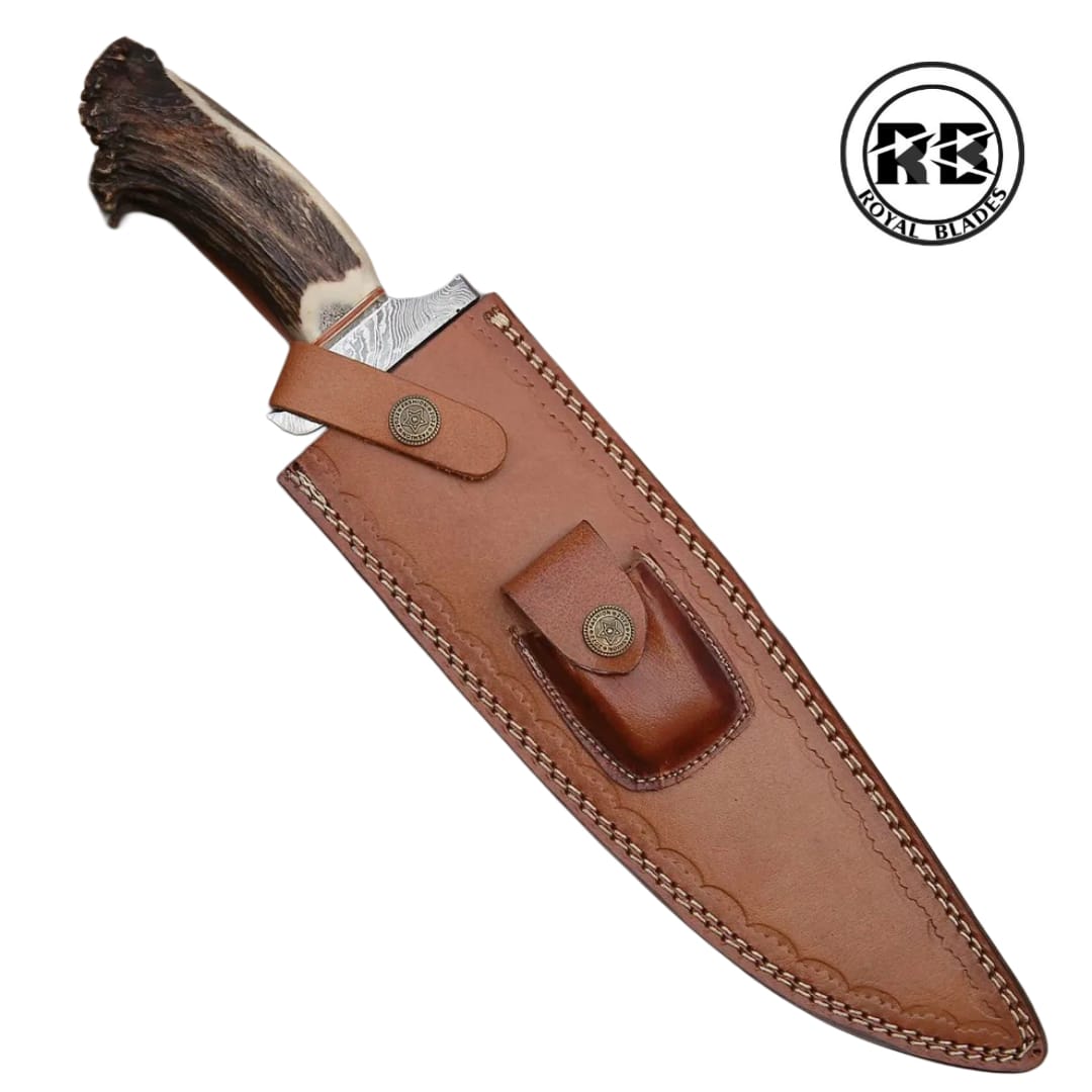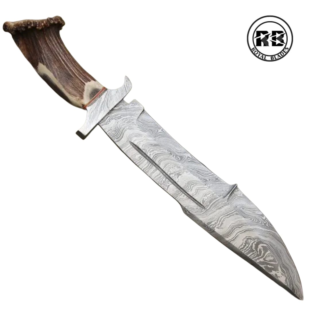 The Royal Blades 14″ Hand-Forged Damascus Bowie with Premium Stag Horn