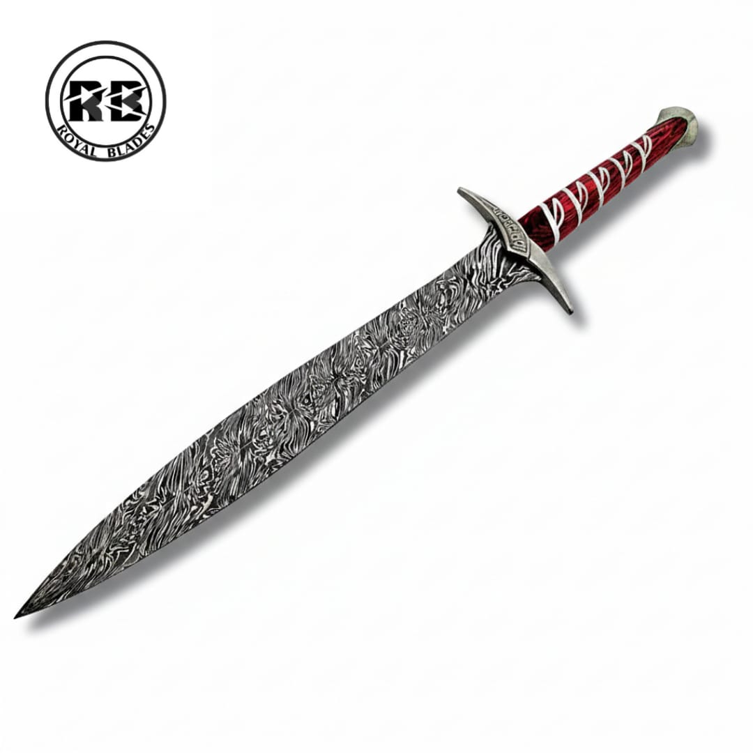 The centerpiece is a 20-inch Damascus steel blade, meticulously hand-forged by our expert knifemakers. The unique, swirling pattern isn’t just for show; the multiple layers of steel provide exceptional strength and a “fearsome” edge that defines the Witcher series. The blade profile is inspired by medieval Viking swords, offering a wide, powerful presence.