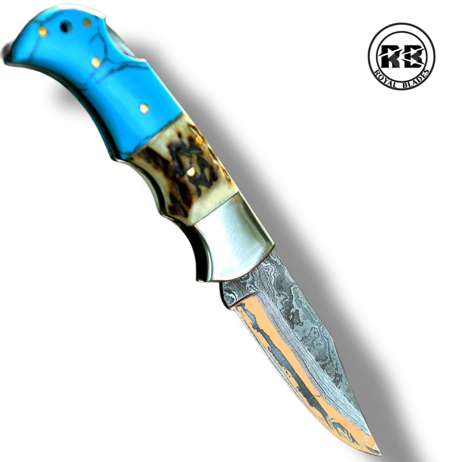 The Royal Blades 7.5″ Handcrafted Turquoise and Stag Horn Pocket Folding Knife