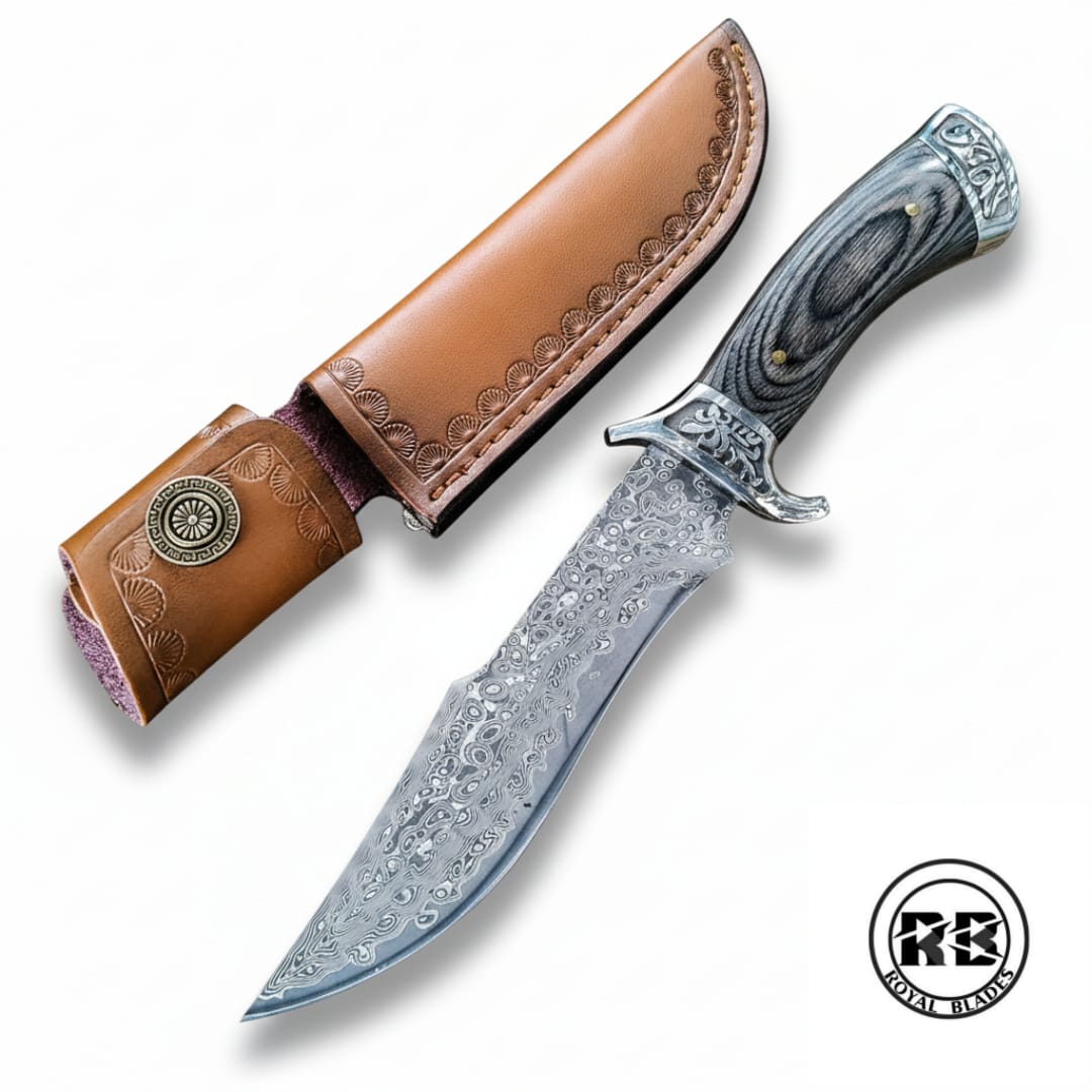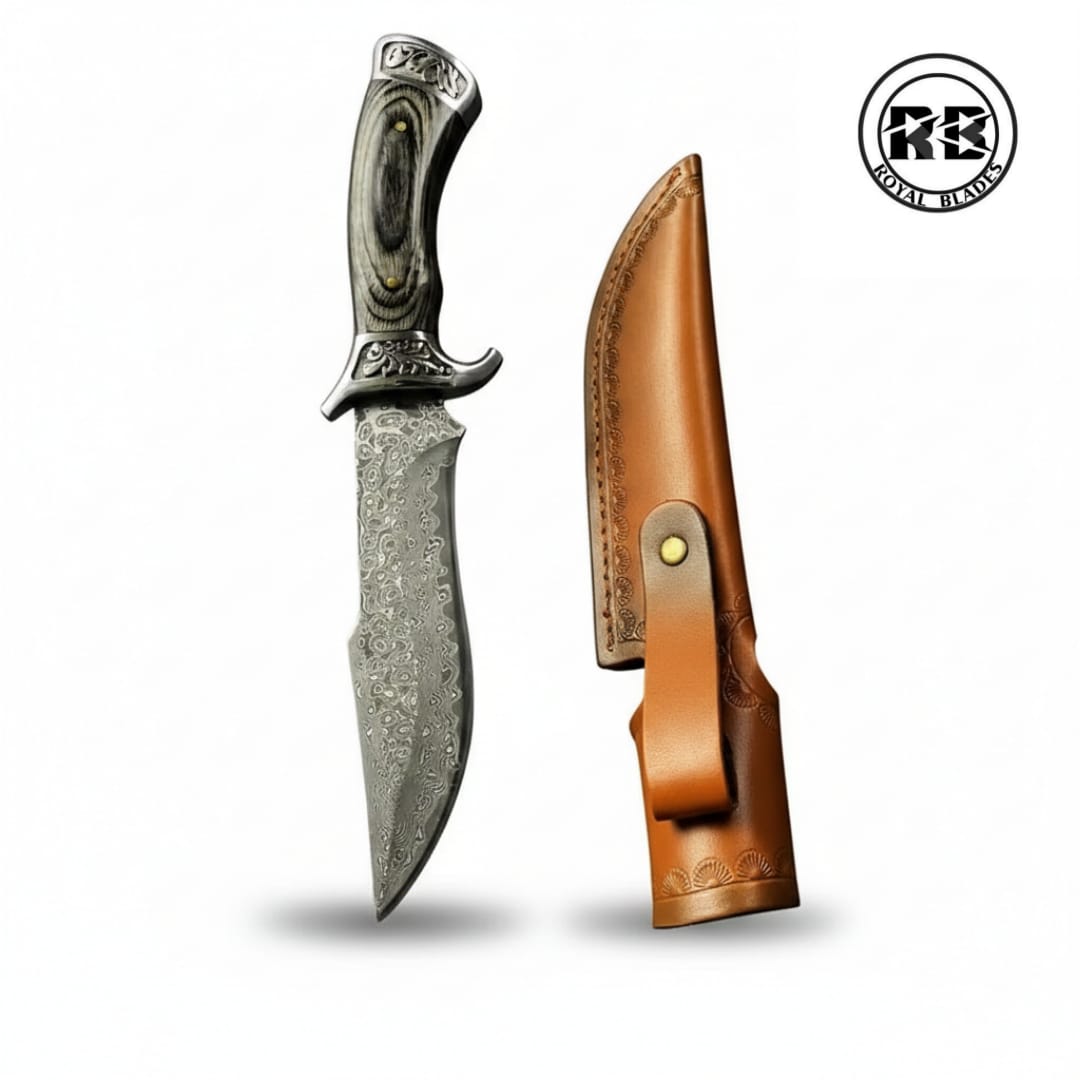 Engineered for the elite outdoorsman, this 9.8-inch fixed blade is a masterpiece of tactical utility. Featuring a fearsome 4.9-inch blade hand-forged from 512 layers of premium 1095 and 15N20 high-carbon steel, it offers a specialized profile for chopping, carving, and skinning. Anchored by a full-tang wood handle and a custom-fitted leather sheath, this Royal Blades original is a definitive tool for any serious survivalist.