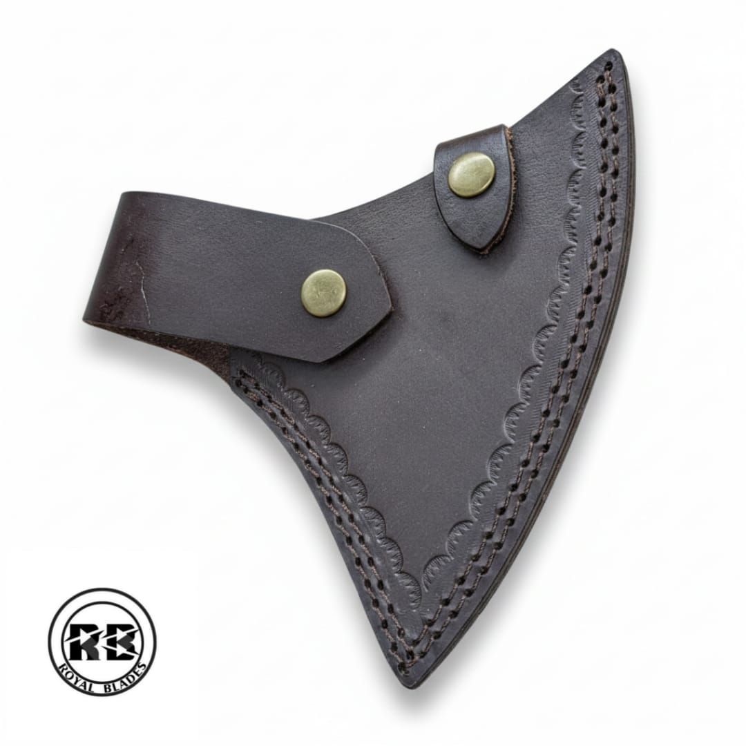 To ensure safe transport and long-term durability, this axe includes a custom-made genuine leather sheath. Featuring reinforced stitching and heavy-duty snaps, it protects the carbon steel edge from moisture and impact, making it the ideal companion for camping, forestry, or home utility.